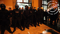 Τα γύρω καφέ είχαν γεμίσει από δημοσιογράφους που περίμεναν να καλύψουν τις εξελίξεις. Δύο συνελεύσεις είχαν προγραμματιστεί, όπως πληροφορηθήκαμε -μία των μεταναστών και μία της επιτροπής αλληλεγγύης. Μάταια περιμέναμε κάποια ενημέρωση. Οι συνελεύσεις δεν είχαν καν ξεκινήσει μέχρι τις 3.30 το απόγευμα. Εκείνη την ώρα φάνηκαν τα πρώτα σημάδια που προμήνυαν πως κάτι ετοιμάζεται. Αποκλεισμένοι στα στενά της Σόλωνος, προσπαθούσαμε να μάθουμε τις πολιτικές εξελίξεις από το Γαλλικό Πρακτορείο. Μια σειρά από μισθωμένα λεωφορεία που είχαν σταθμεύσει σε παρακείμενο δρόμο, έδειχναν πως το πράγμα είχε πάρει ήδη ένα δρόμο. Μέσα σε ελάχιστα δευτερόλεπτα, αστυνομικοί έκλεισαν με κορδέλες την οδό Σόλωνος, στο ύψος της οδού Σίνα και της οδού Μασσαλίας. Μέσα σε ελάχιστα λεπτά όλοι οι δρόμοι γέμισαν με αστυνομικούς.